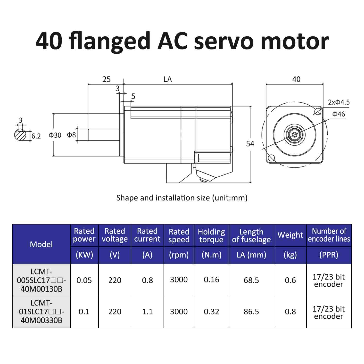 | نموذج المحرك | LCMT-005SLC17-40M00130B | LCMT-01SLC17-40M00330B |