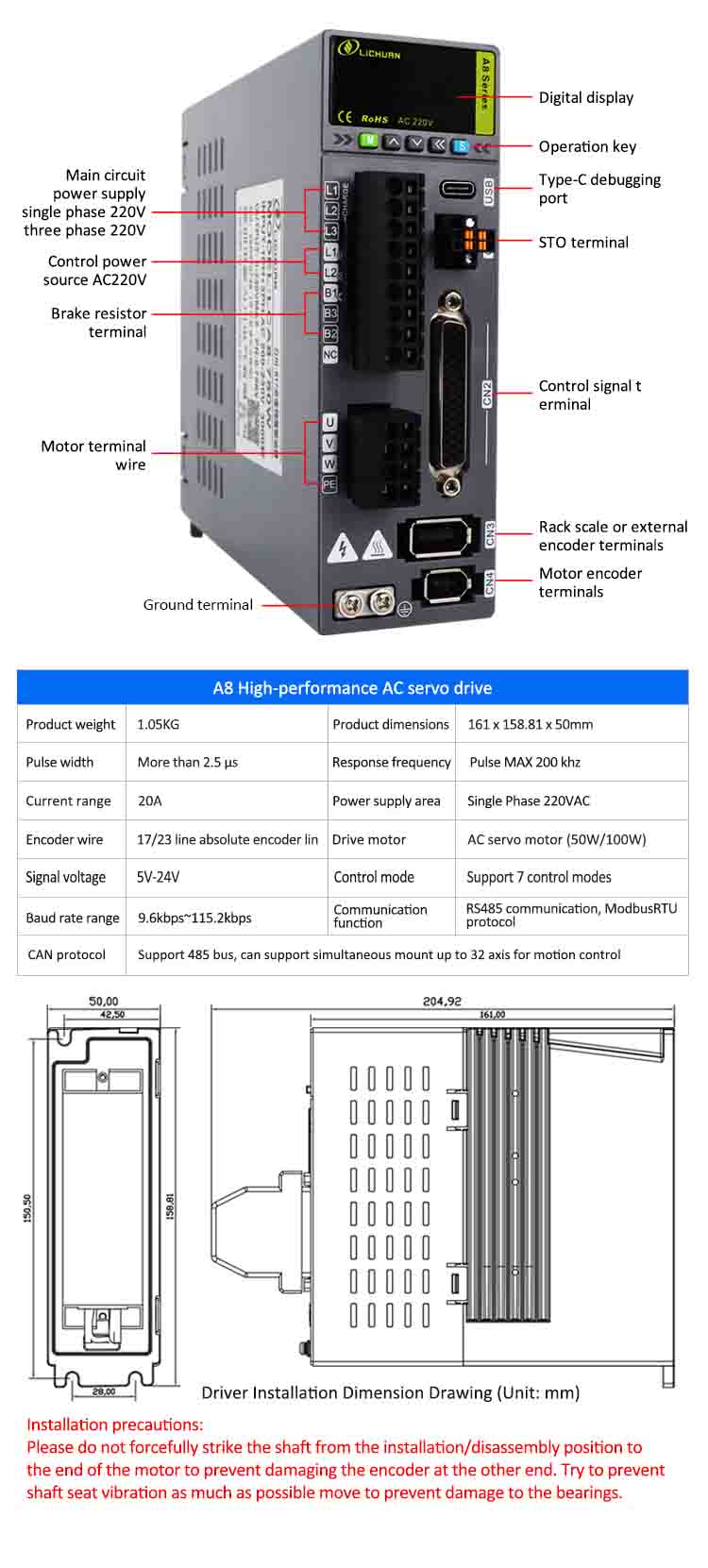مزايا محرك سيرفو سلسلة Lichuan A8: