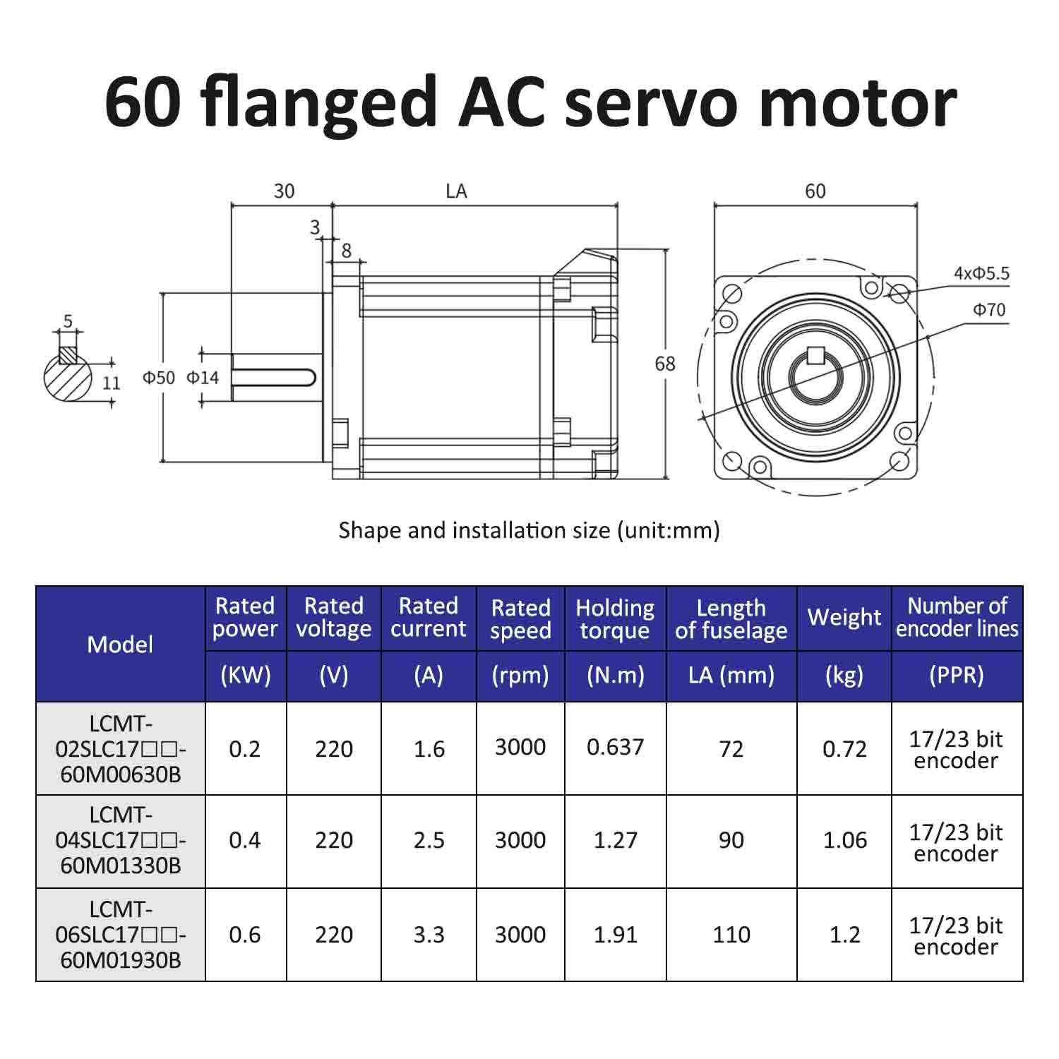 | نموذج المحرك | LCMT-02SLC17-60M00630B | LCMT-04SLC17-60M01330B | LCMT-06SLC17-60M01930B |