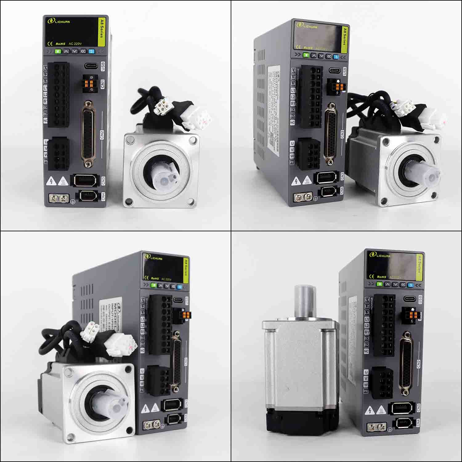 Lichuan AC Servo Motor Drivers Kit A8 عالية الدقة STO ABZ 200W 0.637N.m 220V 1.6A 3000RPM IP65