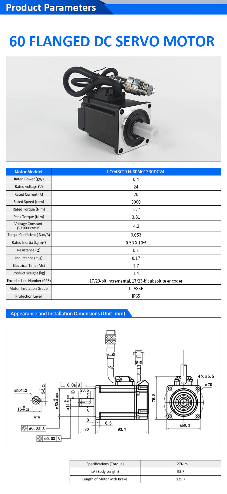 مجموعة برامج تشغيل محرك مؤازر Pulse/RS485/CANopen/EtherCAT 60 FLANGED 200W/400W/600W